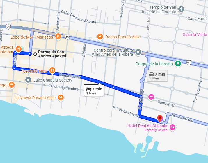 Regreso de Ajijic Recomendamos no regresar de noche desde Ajijic. Por favor ve las opciones de hoteles que te compartimos. No las dejes pasar por que se llenan.